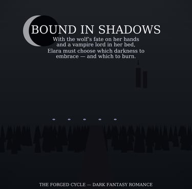 Elara has broken the bell, silenced the gods’ warning, and woken the hunger that waits beneath Thornmere. Now the village stands on the knife’s edge — between fire and shadow, salvation and ruin. The parson calls for blood to appease the darkness. The villagers whisper of curses and pray to anything that might listen. And in the growing silence, two forces pull at Elara’s soul: the wolf who would burn with her to keep her whole, and the vampire lord who offers her control — at a price. But nothing burns clean. Every choice feeds the Hollow King. Every night the veil thins, and his spawn claw closer to the surface. To save Thornmere, Elara must decide whether to trust her fire, her heart, or the very shadow she has sworn to resist. When the final door breaks and the Hollow King rises, only one truth remains: If she cannot master the fire inside her, she will become the thing she was born to destroy. Perfect for fans of dark fantasy romance, morally gray heroes, and high-stakes magic, Bound in Shadows is a heart-pounding continuation of The Forged Cycle — where love is dangerous, destiny is a choice, and every flame casts a shadow.